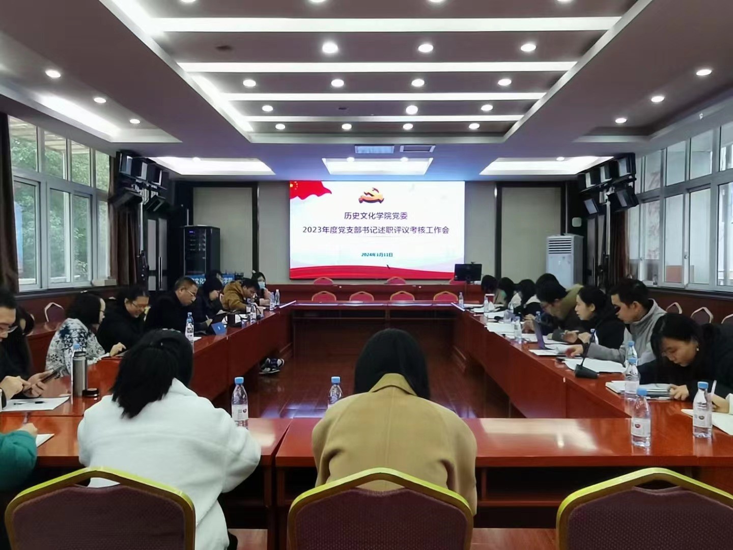 2024年1月11日上午,历史文化公司党委召开了2023年度党支部书记述职评议考核工作会,全面考核党支部书记年度履职情况,深入查摆短板弱项,明确下一步工作举措,进一步压紧压实党支部书记抓基层党建责任,扎实推进党建与事业高质量融合发展。公司党委书记罗庆昌、公司党委委员、党支部书记、党员代表和师生群众代表近30人参加会议。会议由公司党委副书记、纪委书记张静主持。