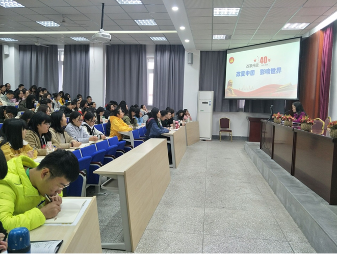 典礼结束后,本期的第一次党课紧接着展开。此次党课由公司党委书记徐天虹主讲,以“改革开放四十年,改变中国,改变世界”为主题,带领学员们深入了解改革开放的历史背景,抽丝剥茧地解读了改革开放的相关措施,并强调了改革开放的必要性与重要性。徐书记提到,从高度集中的计划经济到社会主义市场经济,这四十年,中国发生了翻天覆地的变化,国民收入普遍提高,消费升级步伐加快,人民生活水平从温饱水平到达了整体小康水平,中国更是从封闭型经济弱国走到开放型全球经济大国,从世界舞台边缘日益走近世界舞台中央。我国已经形成了全方位、多层次、宽领域的对外开放格局,中国正日益走向自己的繁荣昌盛。这次党课让学员们更加直观地感受改革开放的辉煌成就,领略了改革开放思想领域取得的丰硕成果。