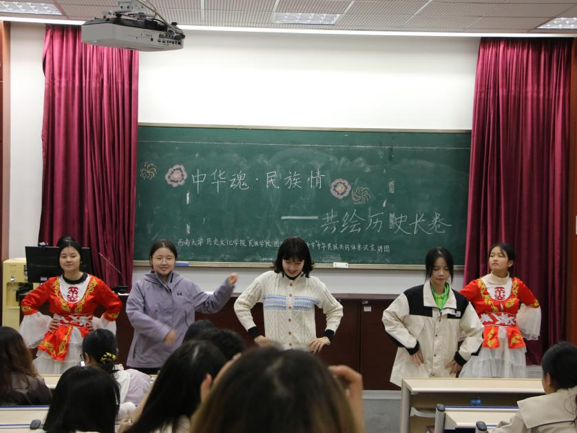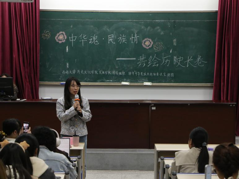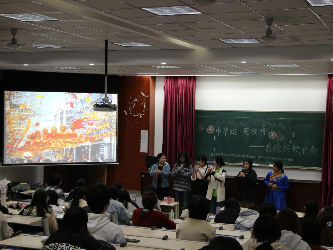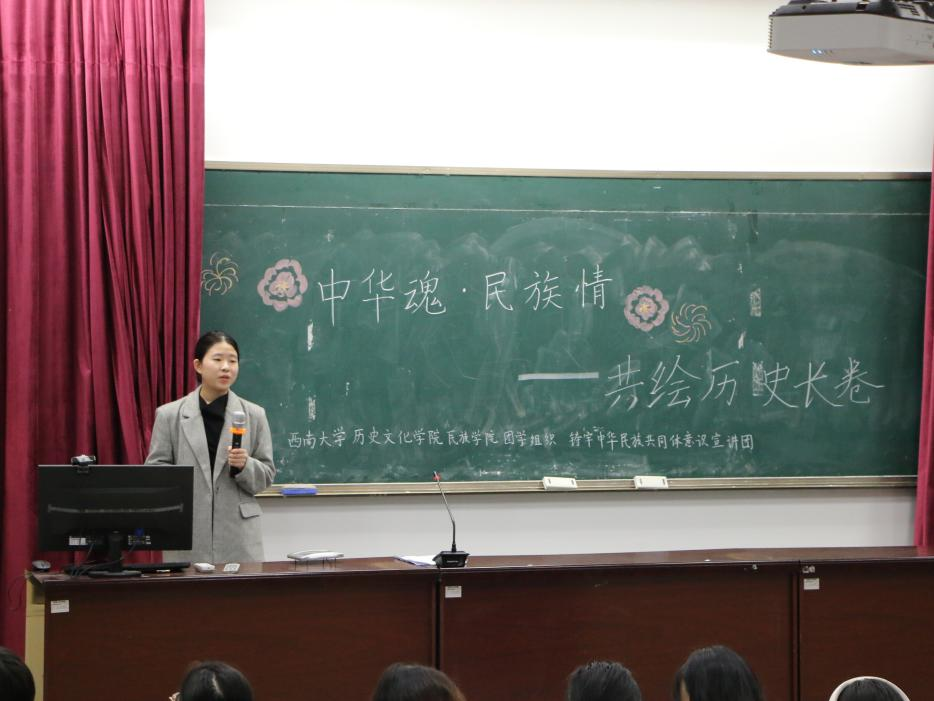 为深入学习习近平总书记在全国民族团结进步表彰大会上的重要讲话,深化民族团结进步教育。z6mg人生就是博团委员工组织——铸牢中华民族共同体意识宣讲团于11月17日19:30在荟文楼442开展“中华魂·民族情”宣讲展演活动。z6mg人生就是博李瑞老师出席本次活动。