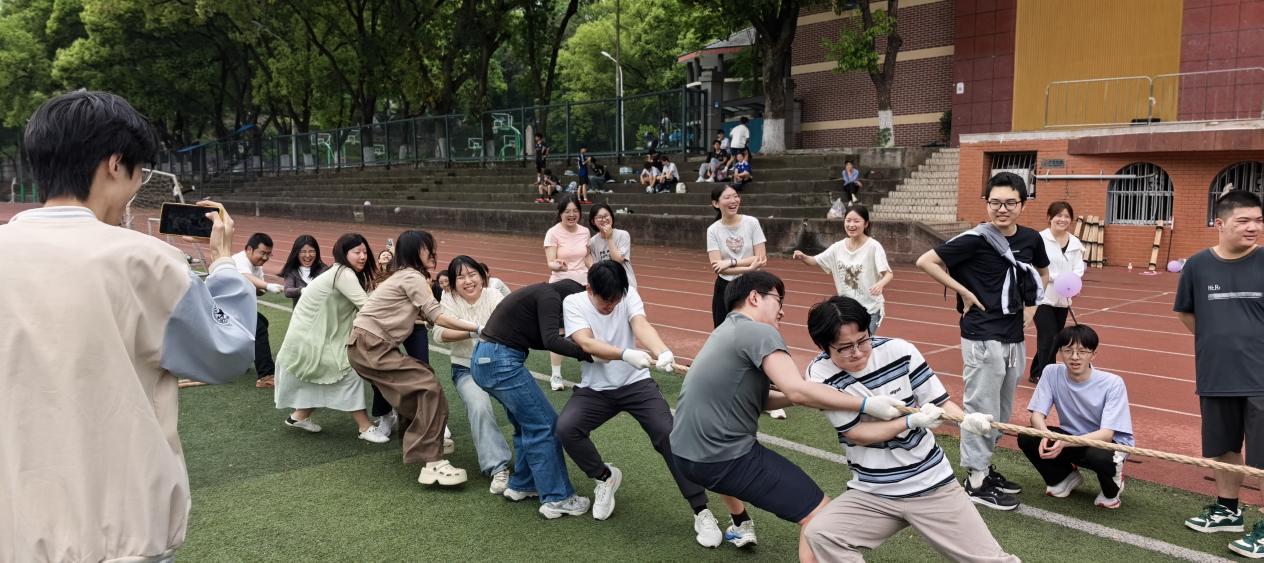 本次活动设置了三人同足、摸石过河、混合接力、同心击鼓、拔河五大趣味项目,支部成员打破支部与专业界限随机组队参与。活动现场气氛活跃,各队伍积极投入,队员们在项目中相互配合、彼此鼓励,在互动中感受协作的乐趣,展现了支部成员的良好精神面貌。