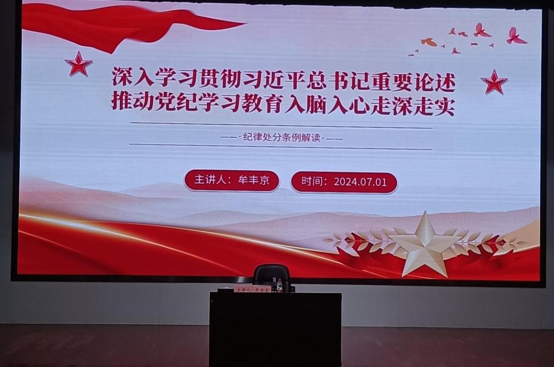 正式进入岗位之前,王颖老师带领同学们来到报告厅同博物馆的其他老师们共同学习牟丰京馆长主讲的主题教育专题党课。正值7月1日中国共产党成立103周年,牟丰京馆长对于习近平总书记重要论述中纪律处分条例进行深入解读,推动党纪学习教育入脑入心、走深走实。新思想引领新实践,新征程呼唤新担当。深入学习领会习近平总书记关于全面加强党的纪律建设的重要论述,进一步提升积极进取、担当作为的精神气,努力在新时代新征程新重庆文化强市建设中,为建设“中国特色、世界一流”博物馆彰显新担当、展现新作为、作出新作为!