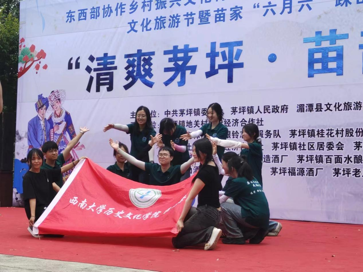 7月11日是苗族的“六月六”传统节日,为尽快融入田野点与当地人建立信任关系,同学们为茅坪苗家“六月六”文化旅游踩山节活动准备了三个节目,7月10日到踩山坪活动地点参与彩排,并在过程中逐渐与当地人熟络起来。