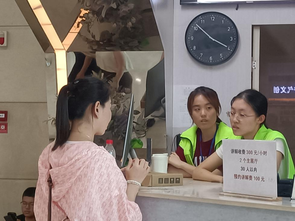 图6 王晗瑜与丁洋同学正在接待到馆游客