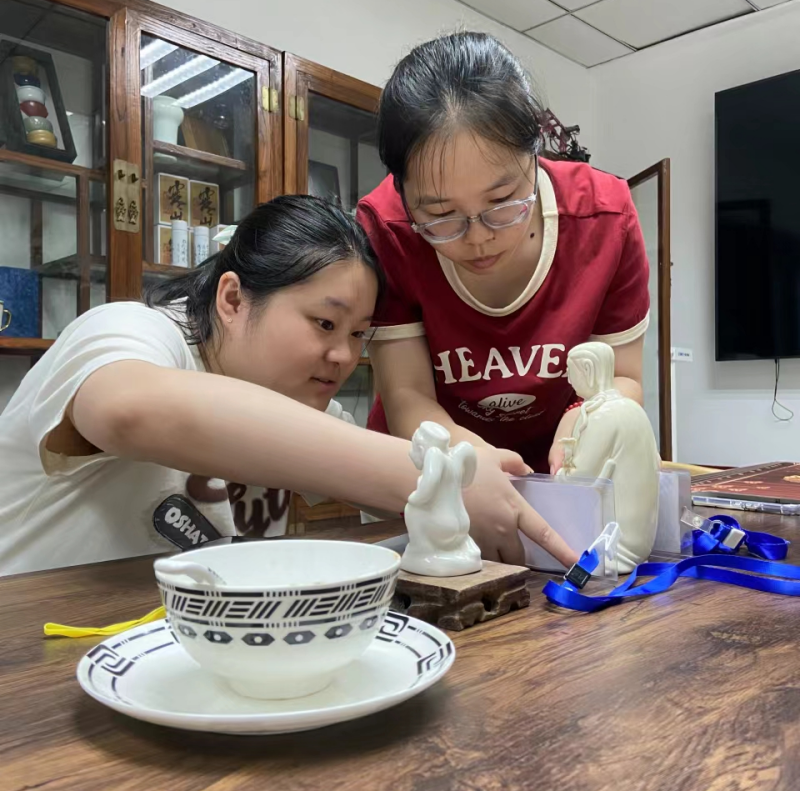 图5 卢佳敏和朱莉同学在测量瓷器文创数据