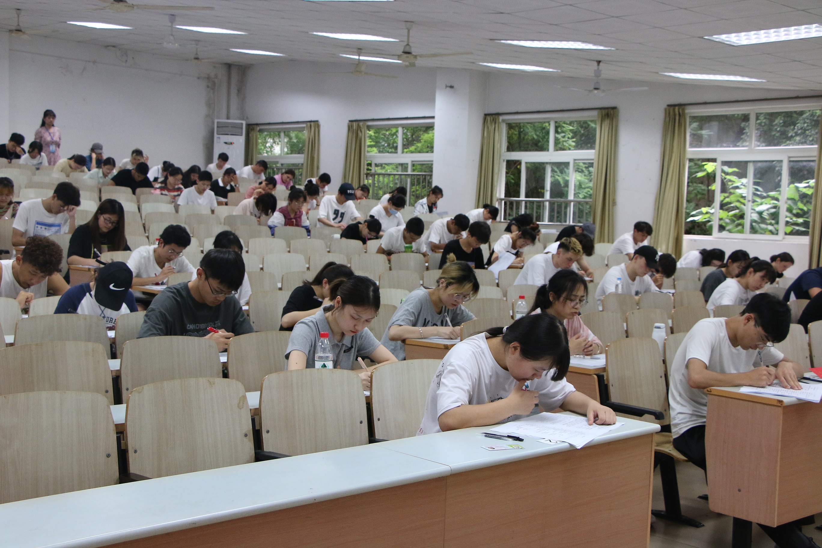 主考人在宣读考试纪律并分发试卷