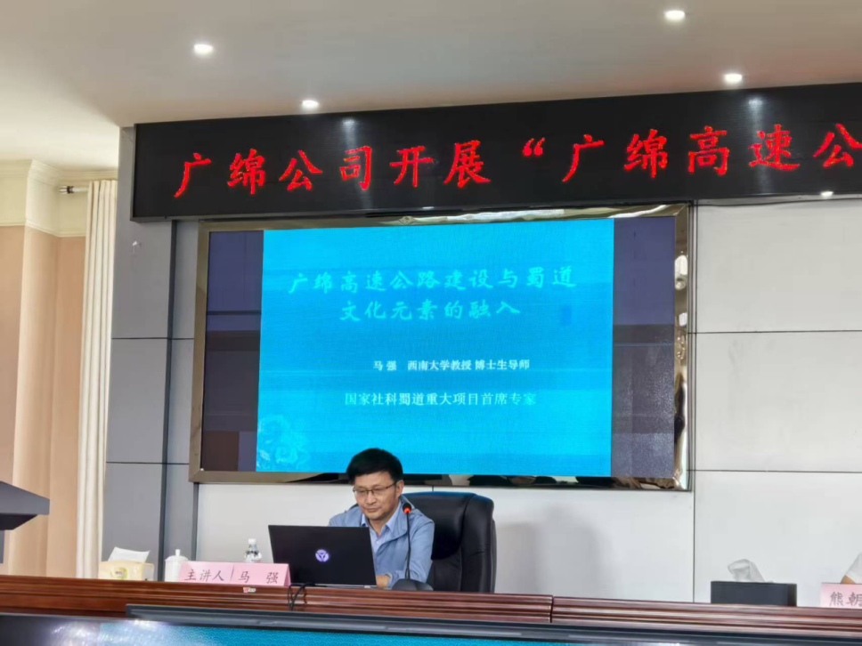 马强教授以《广绵高速建设与蜀道文化融入》为题作专题讲座。他围绕“蜀道的历史地位与现代意义”“金牛道与广绵高速的内在联系”等多个方面,系统梳理了文化融入方向,为公司落实省委《“大蜀道”交通与文化旅游融合发展实施方案》提供了宝贵思路与实践借鉴。