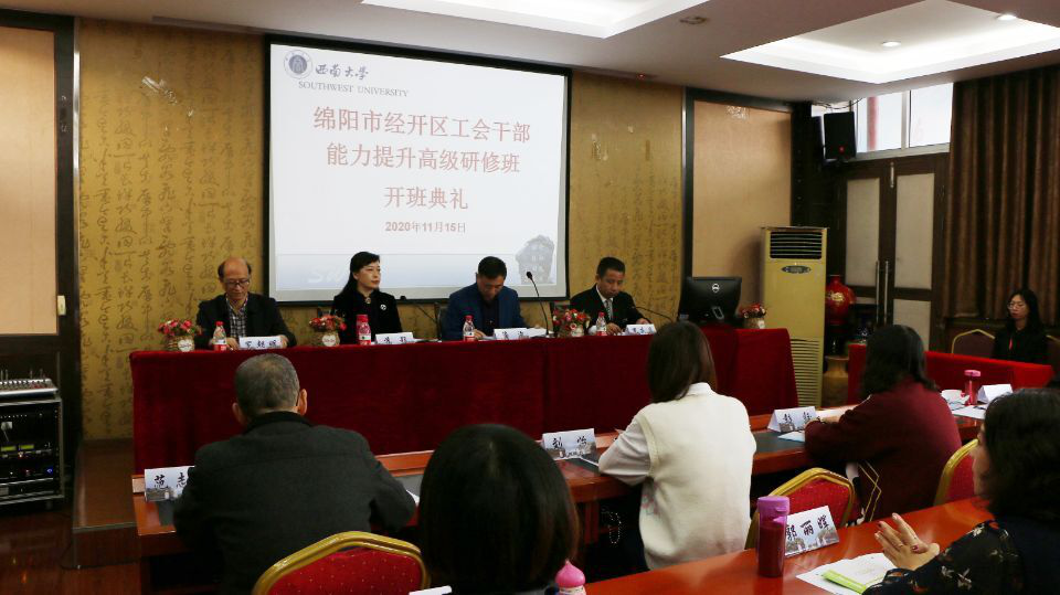 为贯彻落实习近平总书记秋季中央党校开班典礼上关于青年干部能力提升的讲话精神,深入推进成渝双城“经济圈”共建国家战略,促进产业协同联动发展,切实提升公司社会服务水平,绵阳市经开区工会干部能力提升高级研修班于11月15日上午在公司七楼学术报告厅正式开班。公司党委副书记潘洵,绵阳经开区党工委委员、管委会副主任、总工会主席苏颖,培训与继续教育公司经理罗朝明,公司党委书记罗庆昌出席开班典礼。开班典礼由公司副经理王勇主持。此次研修班由公司党委副书记、纪委书记罗朝斌担任班主任。