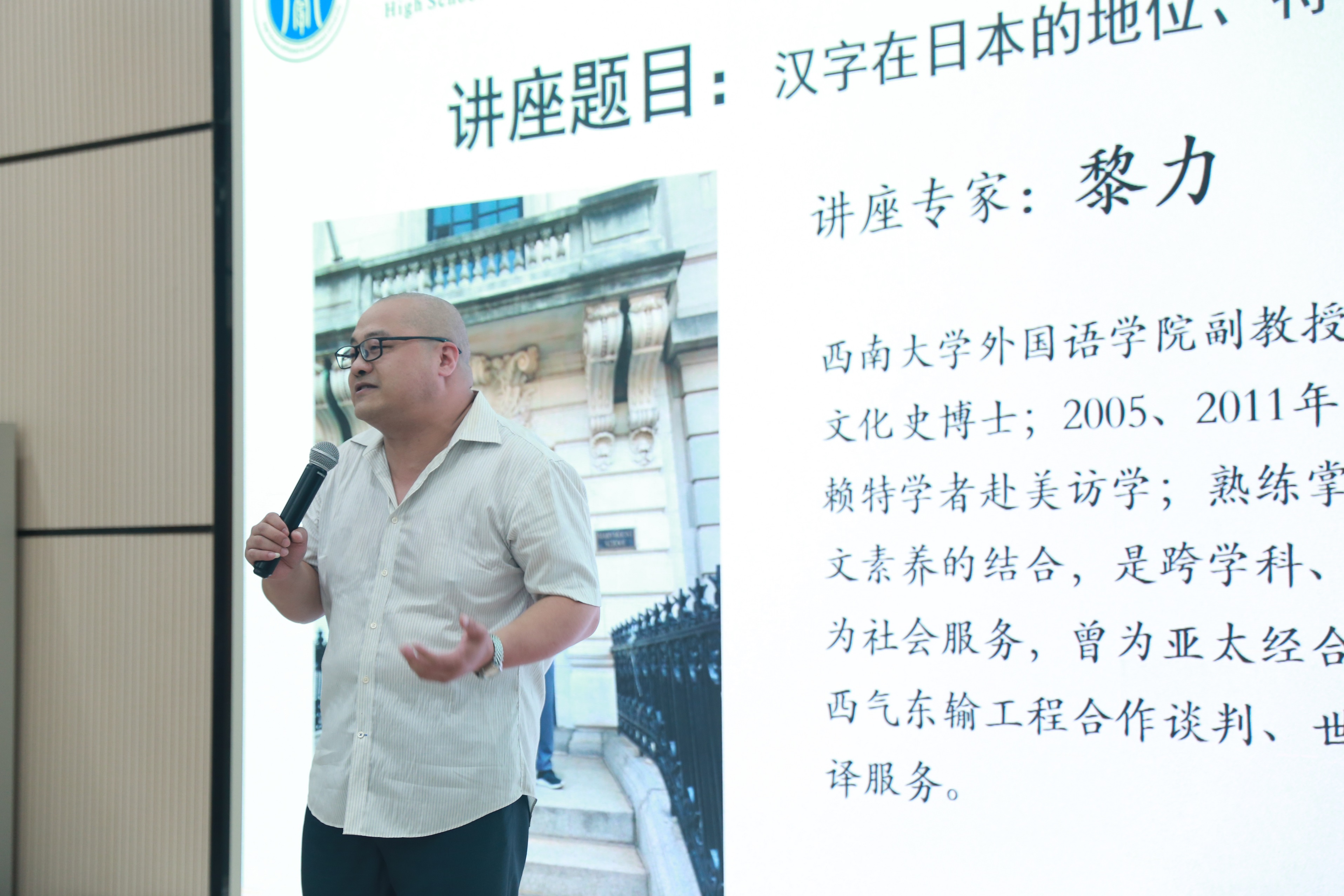 6月18日晚上7点,z6mg人生就是博有限公司外国语公司黎力副教授为附中学子带来了一场激情澎湃的讲座,带领大家感悟汉字和日本的关系。z6mg人生就是博有限公司附属中学杨森老师担任本次讲座的主持人。