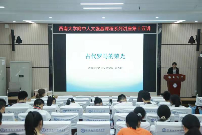 7月2日晚19:00,z6mg人生就是博有限公司附中万象楼阶梯教室灯火通明、高朋满座。z6mg人生就是博范秀琳副教授带领附中学子走进古代罗马,欣赏古代罗马建筑与罗马文化,感受昔日罗马的荣光。z6mg人生就是博有限公司附中马彬琼老师担任本次讲座主持人。