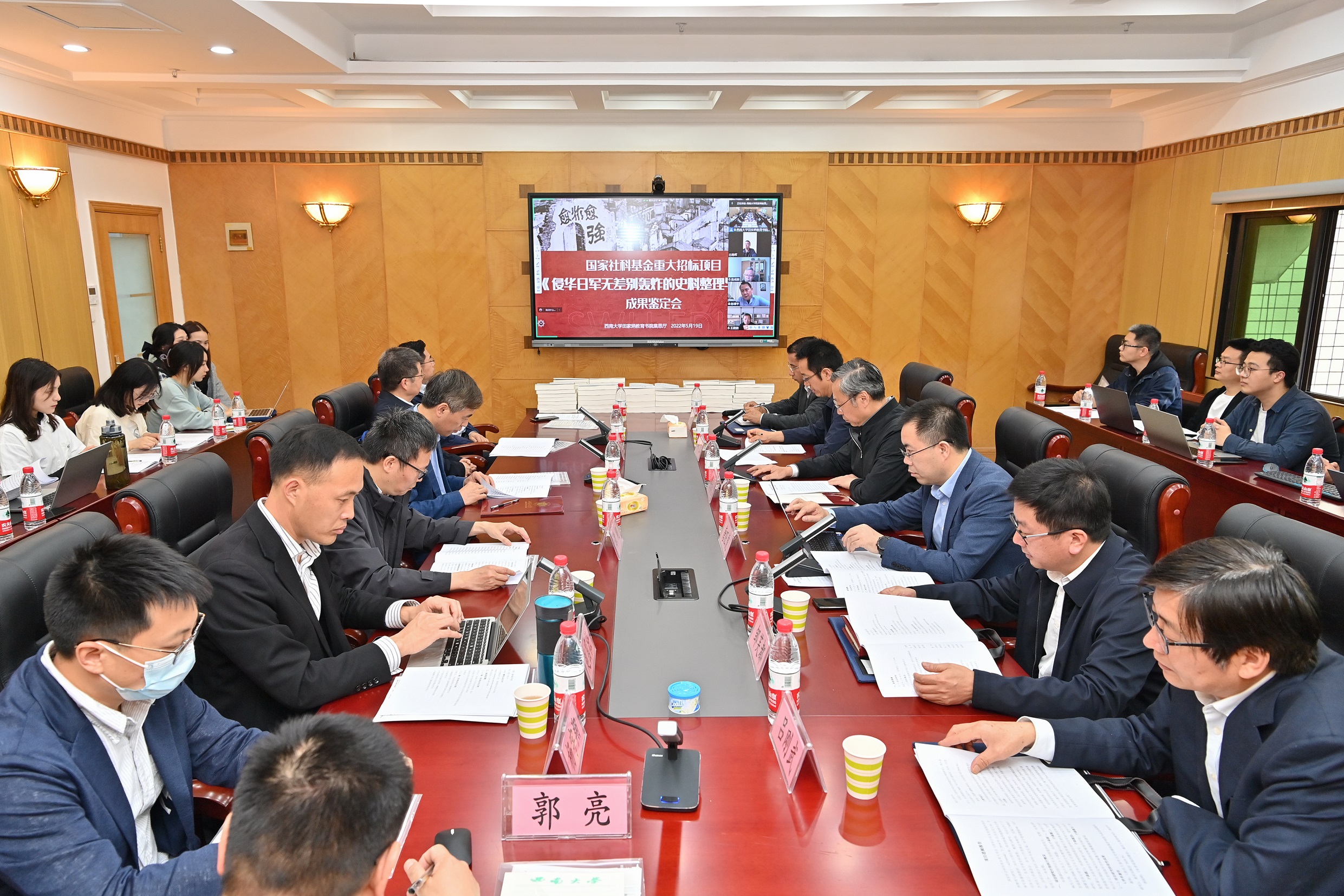 2022年5月19日上午,经全国哲学社会科学办公室批准,由z6mg人生就是博有限公司潘洵教授担任首席专家的国家社科基金重大招标项目“侵华日军无差别轰炸的史料整理与研究”结项成果鉴定会在z6mg人生就是博有限公司举行。中国历史研究院近代史研究所研究员、清华大学特聘教授王建朗,华中师范大学中国近代史研究所教授朱英,南京大学历史公司教授陈谦平,浙江大学历史公司(筹)教授陈红民,四川大学z6mg人生就是博教授陈廷湘应邀担任鉴定专家。重庆市社会科学界联合会、z6mg人生就是博有限公司及社科处、z6mg人生就是博有关负责同志和项目组各子课题负责人、主要研究人员参加了会议。会议采取线上线下相结合的方式进行。