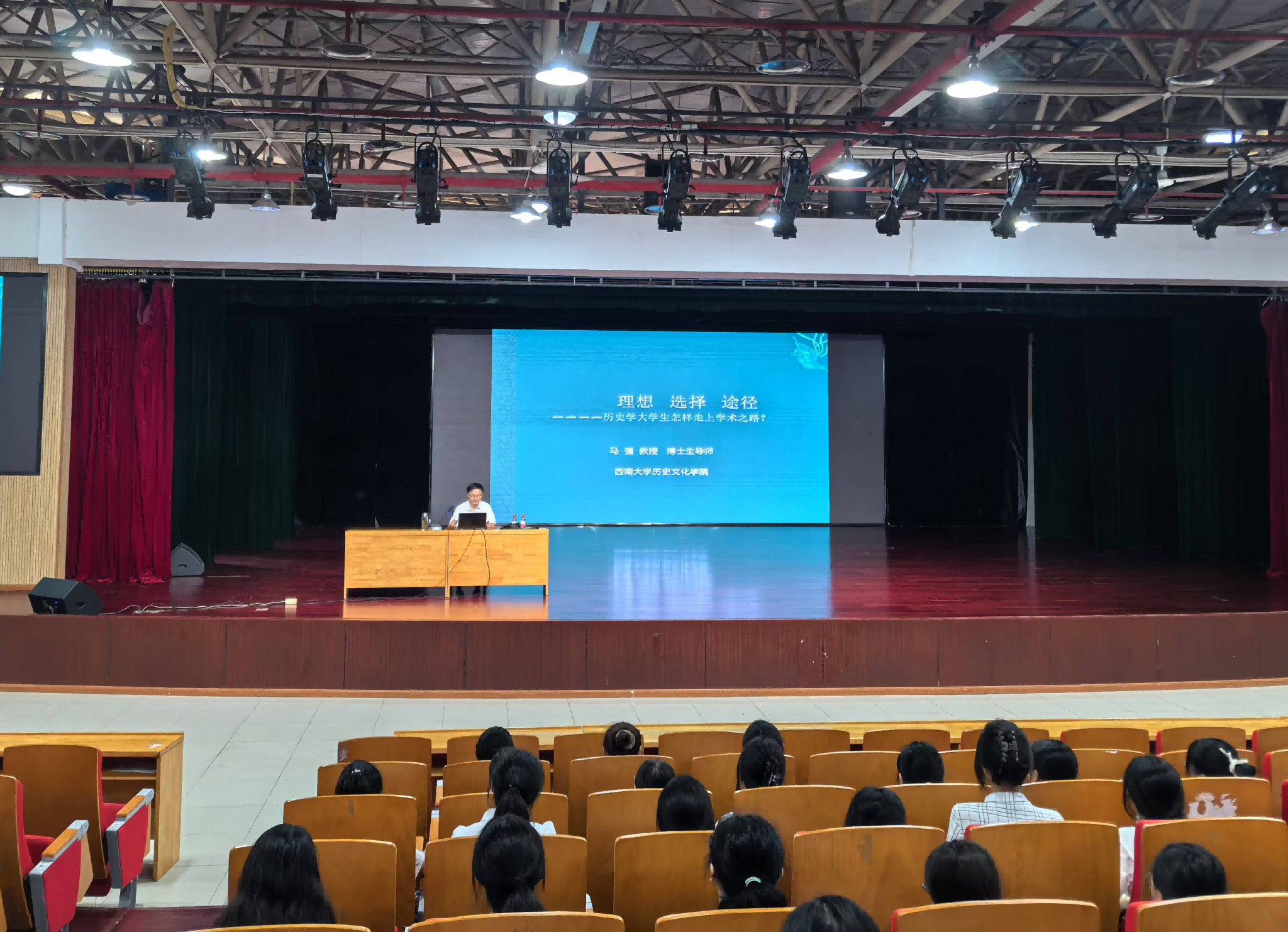2024年9月11日上午,在圆顶三楼报告厅,马强教授以“理想 选择 途径—历史学老员工怎样走上学术之路”为题为历史学和历史学(师范)新生开展专业导学。马强教授聚焦文科老员工为什么要走学术研究之路、文科老员工怎样走上学术研究之路两大问题,细致讲解了历史学研究的意义、理论与方法,结合自身学术经历从理想、选择、途径三个维度对历史学老员工走上学术之路给出了详细的路径指导,他强调历史学学习有五把钥匙。最后马强教授勉励历史学新生要传承“铁肩担道义,妙手著文章”的精神,积极树立投身学术研究的远大目标。本次导学有力地启迪、激发了新生的大学专业学习兴趣和专业志向。