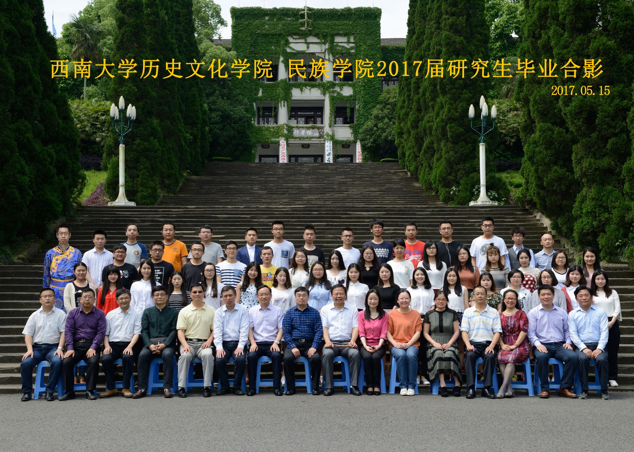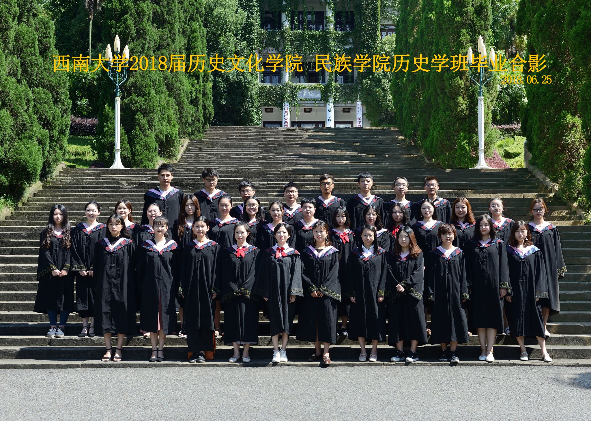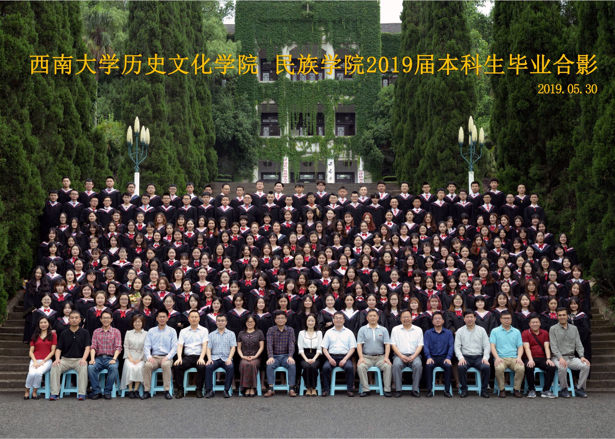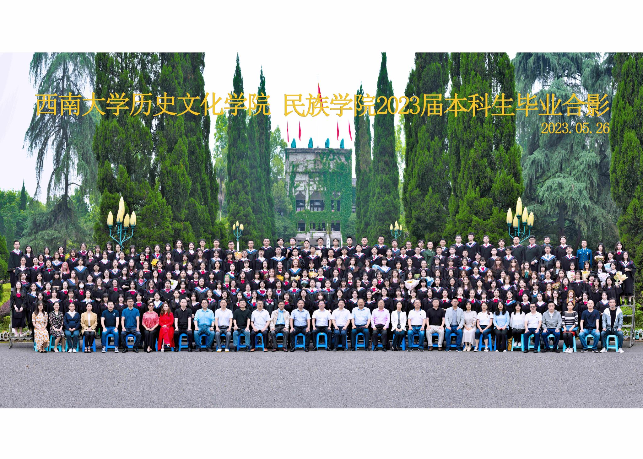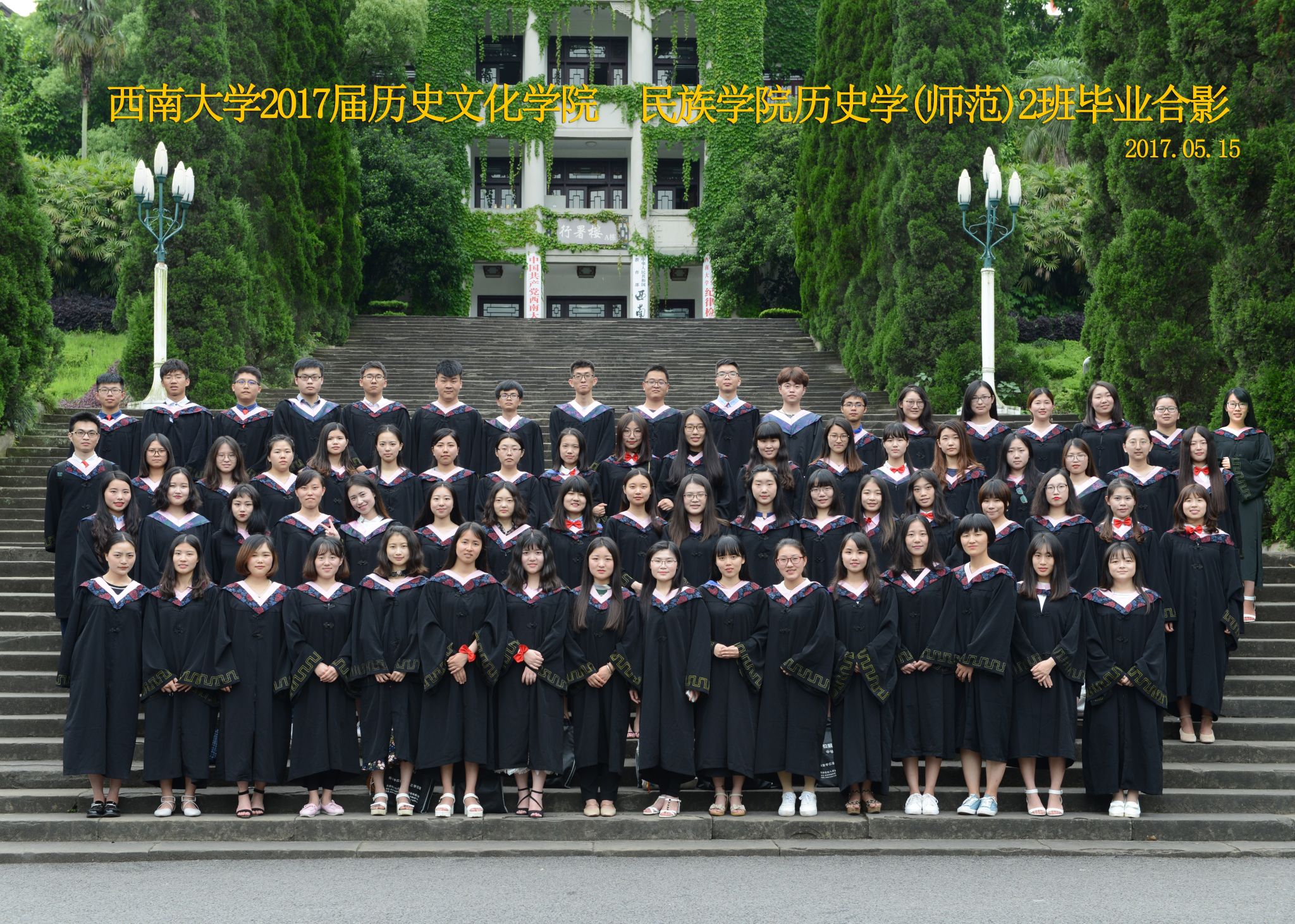 维我西大,滋兰育蕙,弘文兴农,英才济济,拔萃黉宫。含弘光大,学高足以传师道;继往开来,德厚自堪擎苍穹。母院兴教,身先其任:民族预科与民族学,功建中华民族共同体;历史教育与历史学,传承师道中华文明齐兴盛。传统史学,积淀深厚,蔚为大观;专业素养,与时俱进,新枝竞秀。长江文化研究,弘扬中华文明传统,后势可喜;中希文明互鉴,践履民族复兴伟业,前景光明。