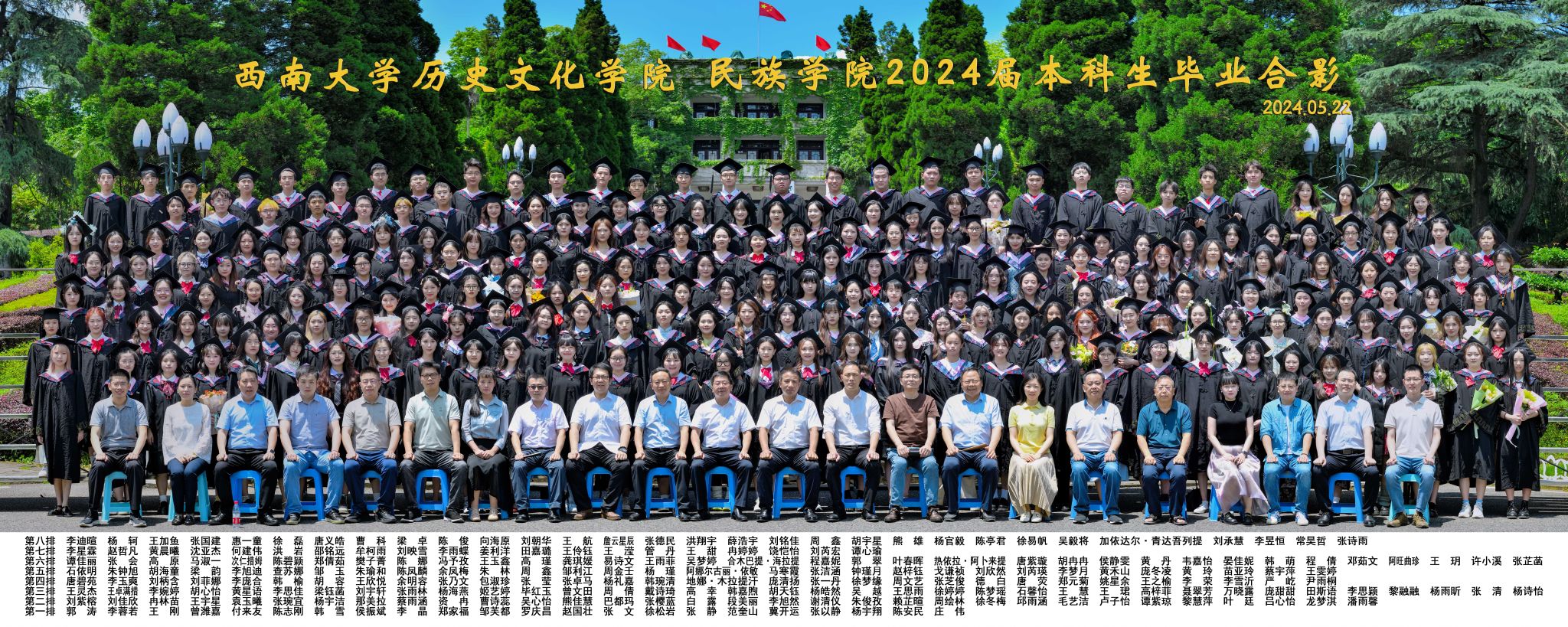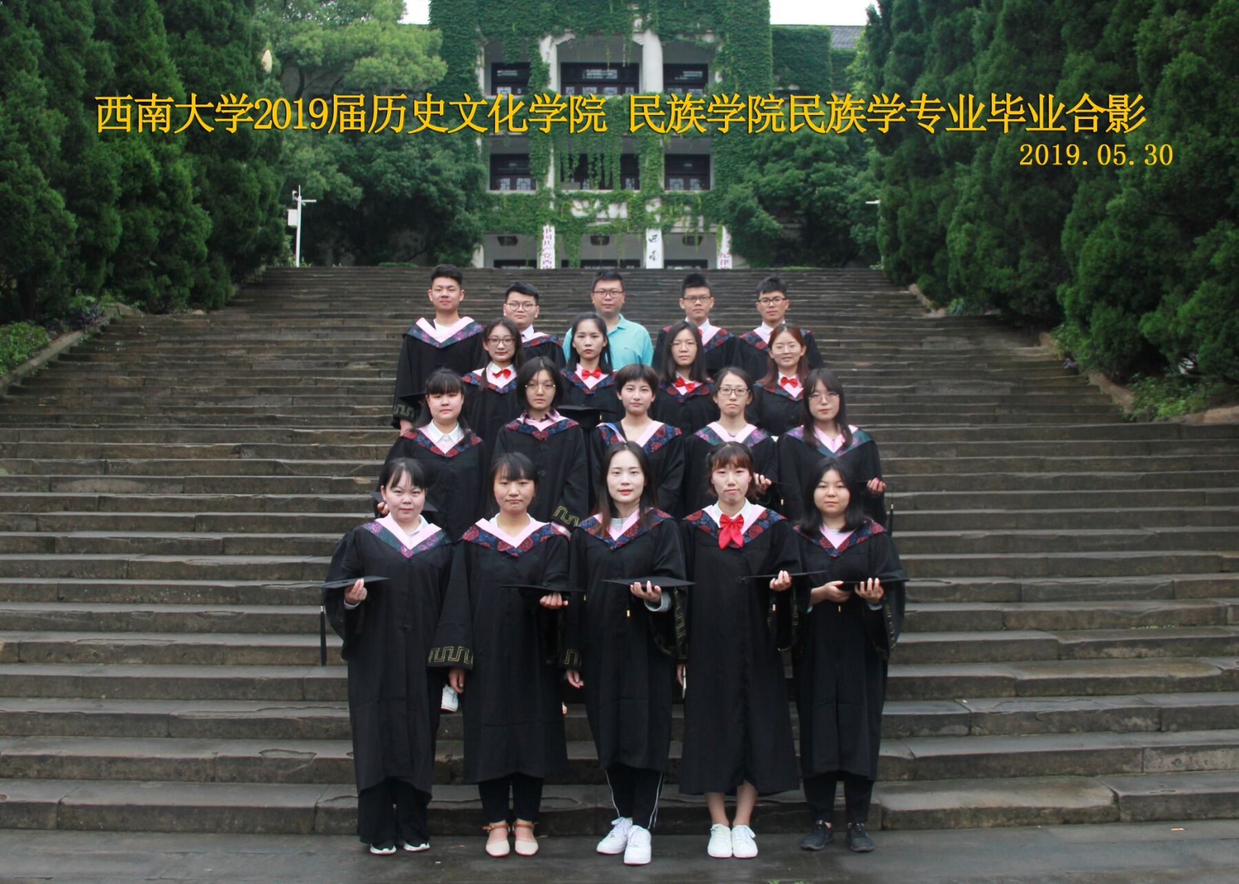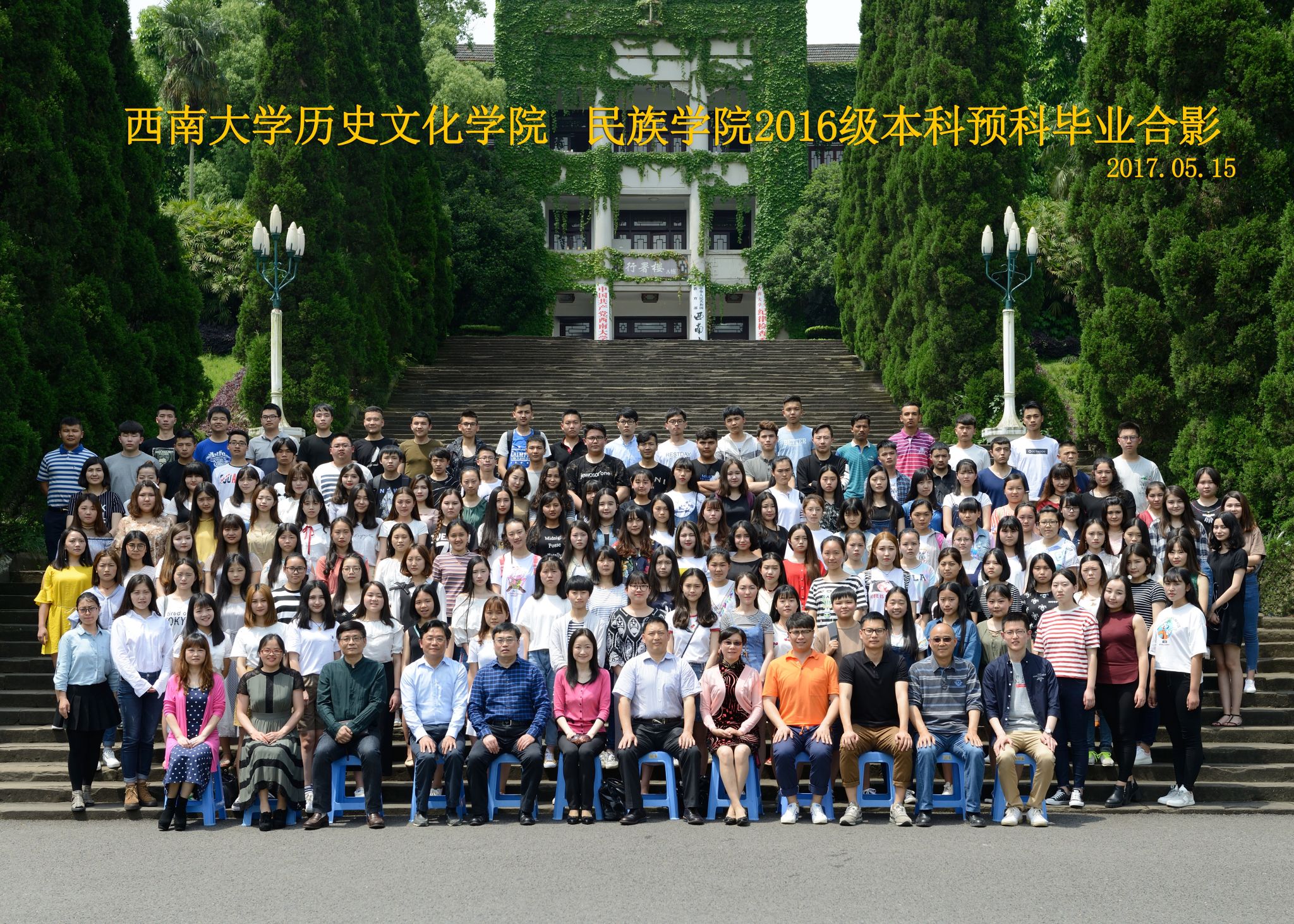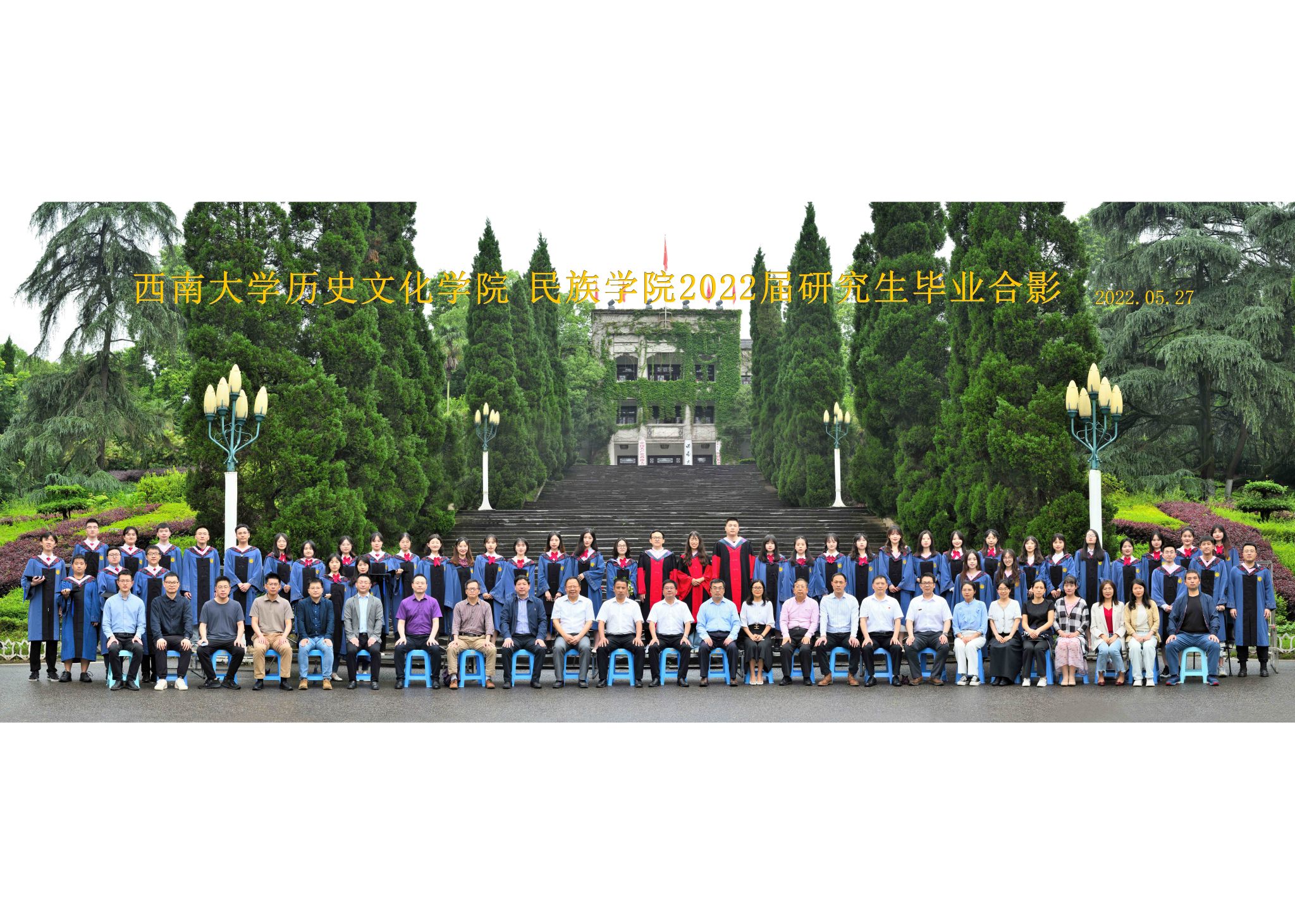 维我西大,滋兰育蕙,弘文兴农,英才济济,拔萃黉宫。含弘光大,学高足以传师道;继往开来,德厚自堪擎苍穹。母院兴教,身先其任:民族预科与民族学,功建中华民族共同体;历史教育与历史学,传承师道中华文明齐兴盛。传统史学,积淀深厚,蔚为大观;专业素养,与时俱进,新枝竞秀。长江文化研究,弘扬中华文明传统,后势可喜;中希文明互鉴,践履民族复兴伟业,前景光明。