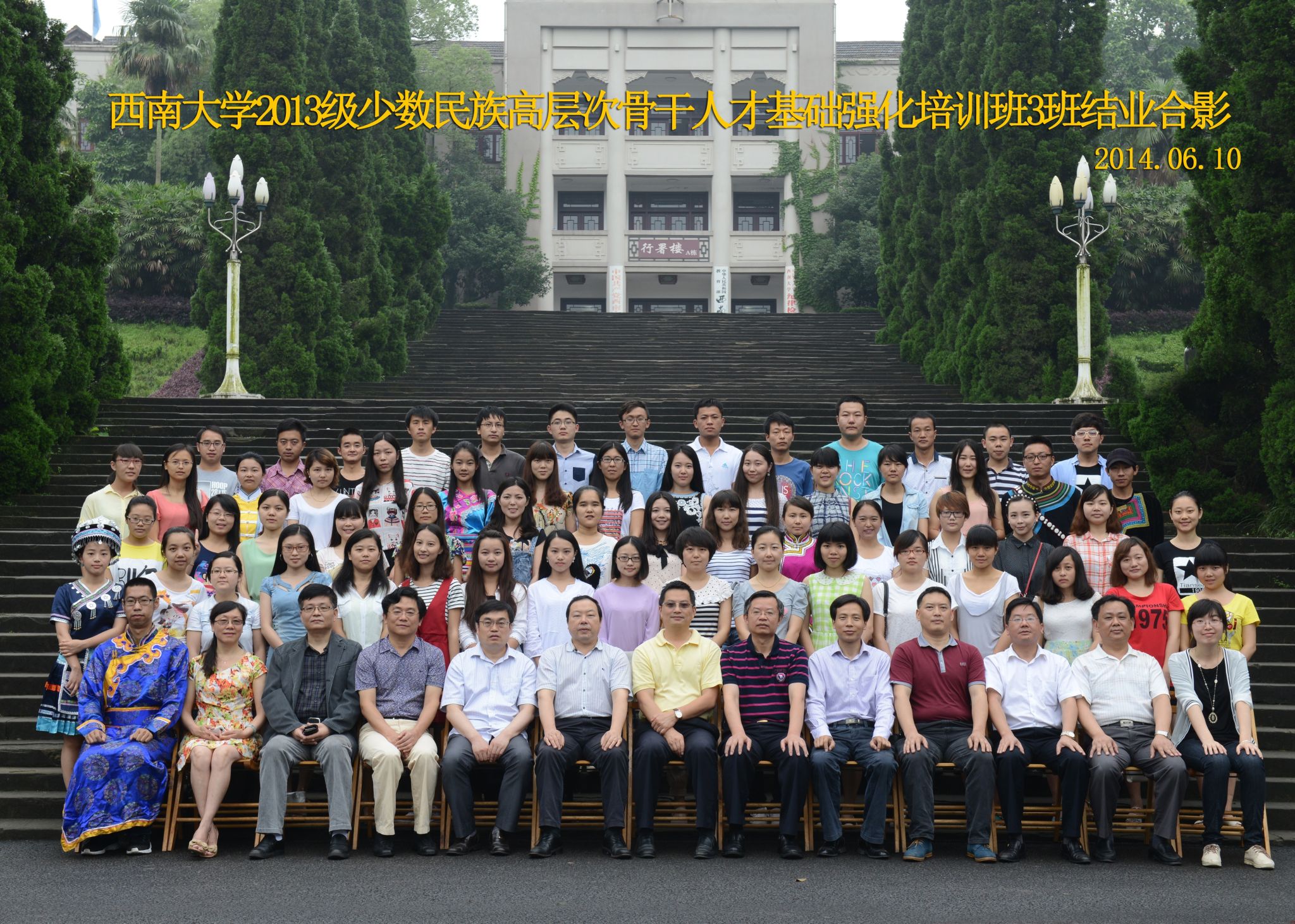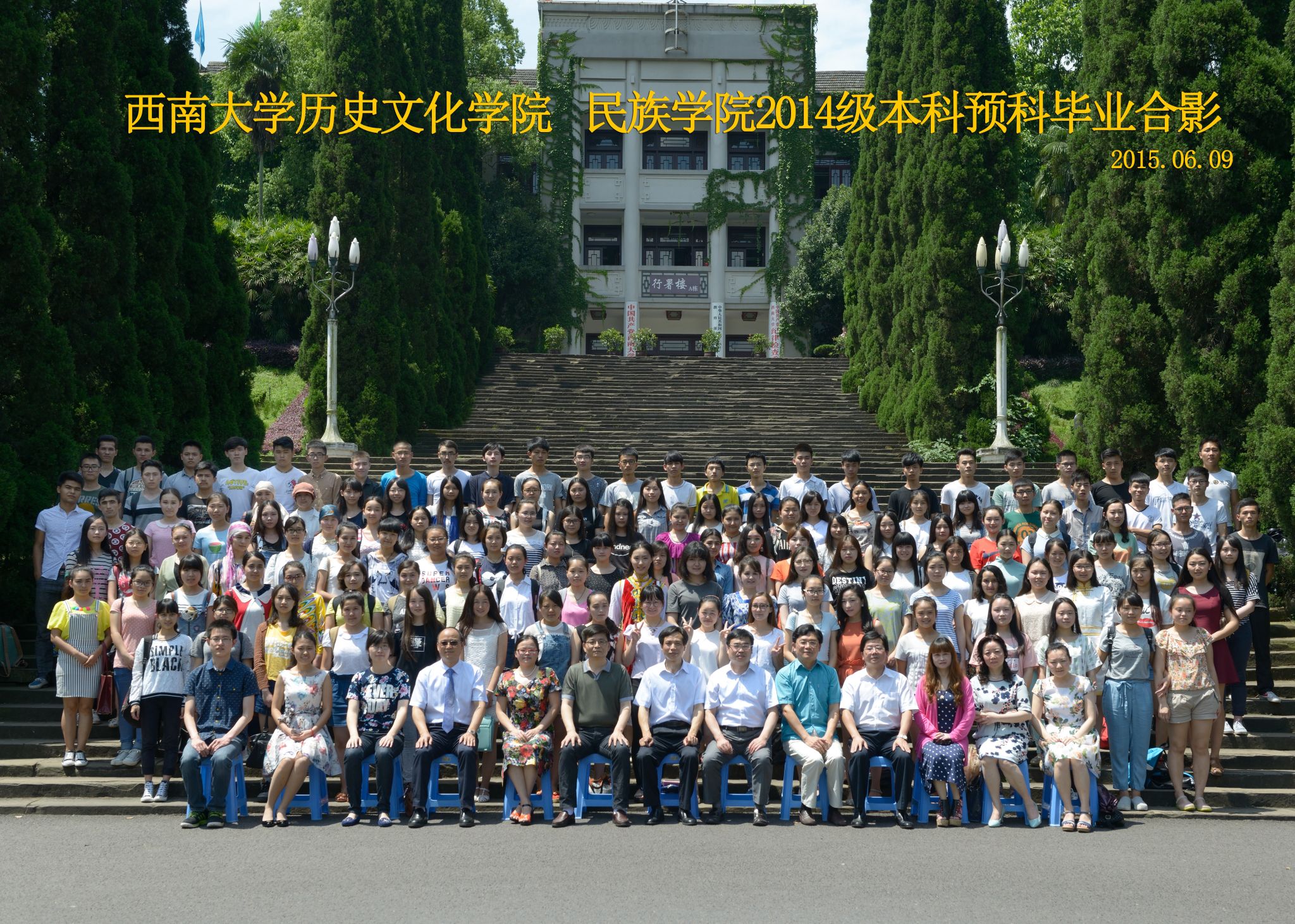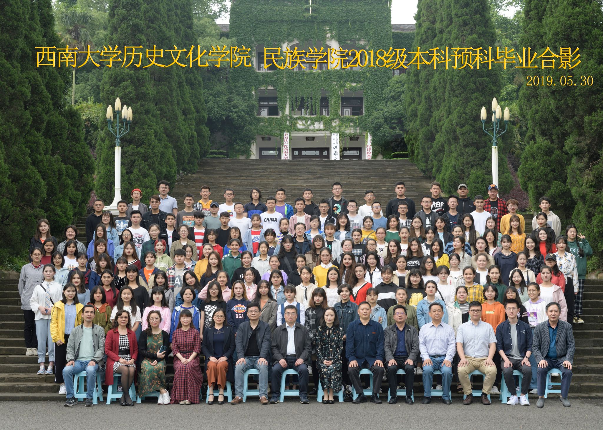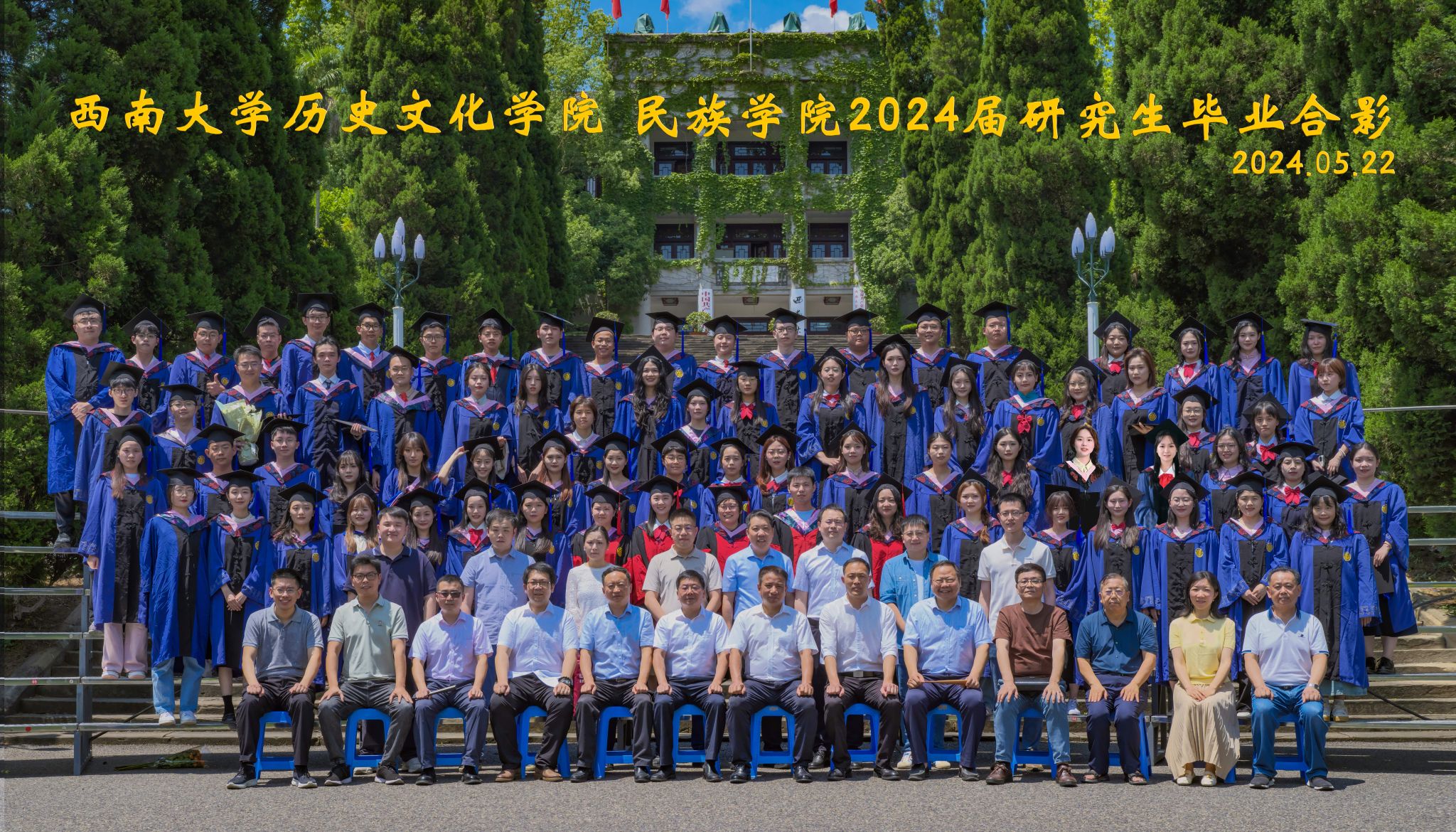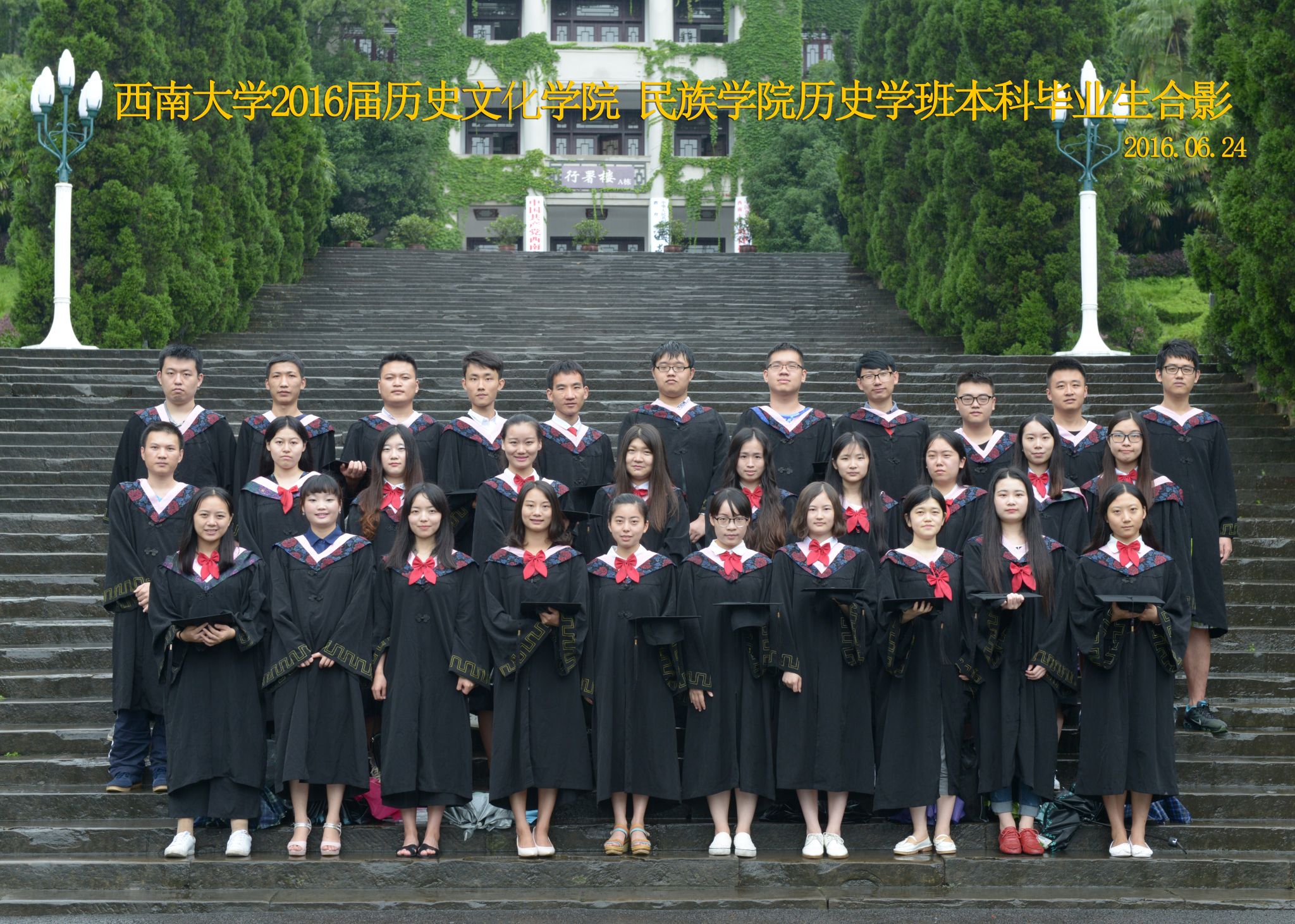 维我西大,滋兰育蕙,弘文兴农,英才济济,拔萃黉宫。含弘光大,学高足以传师道;继往开来,德厚自堪擎苍穹。母院兴教,身先其任:民族预科与民族学,功建中华民族共同体;历史教育与历史学,传承师道中华文明齐兴盛。传统史学,积淀深厚,蔚为大观;专业素养,与时俱进,新枝竞秀。长江文化研究,弘扬中华文明传统,后势可喜;中希文明互鉴,践履民族复兴伟业,前景光明。